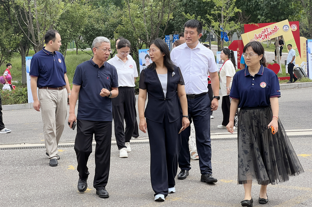 学校领导和领导班子成员杨天梅、陈克正、丁林、罗细亮、李金红、秦姣在相关部门负责人的陪同下,分别来到崂山校区、四方校区、高密校区、中德校区查看新生报到情况,与在现场办理报到手续的新生和家长亲切交流,了解各学院、校区迎新部署和特色亮点等,向在迎新一线辛苦付出的师生员工表示慰问,并希望各部门、学院、校区用心、用情、用力服务好新生,助力新生顺利开启大学生涯,为新生入学和新学期学习生活创造良好的条件和环境。
