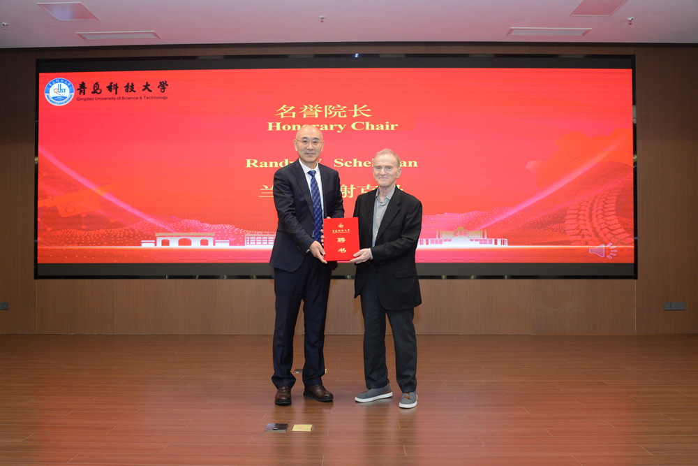 校长陈克正为Randy W.Schekman教授颁发“前沿生物医药技术研究院名誉院长”聘书,为张会平、蒋秋兴教授颁发“青岛科技大学客座教授”聘书,以期为前沿生物医药技术研究院的发展注入新的活力,助力学校在生物医药关键领域取得更多突破性成果。