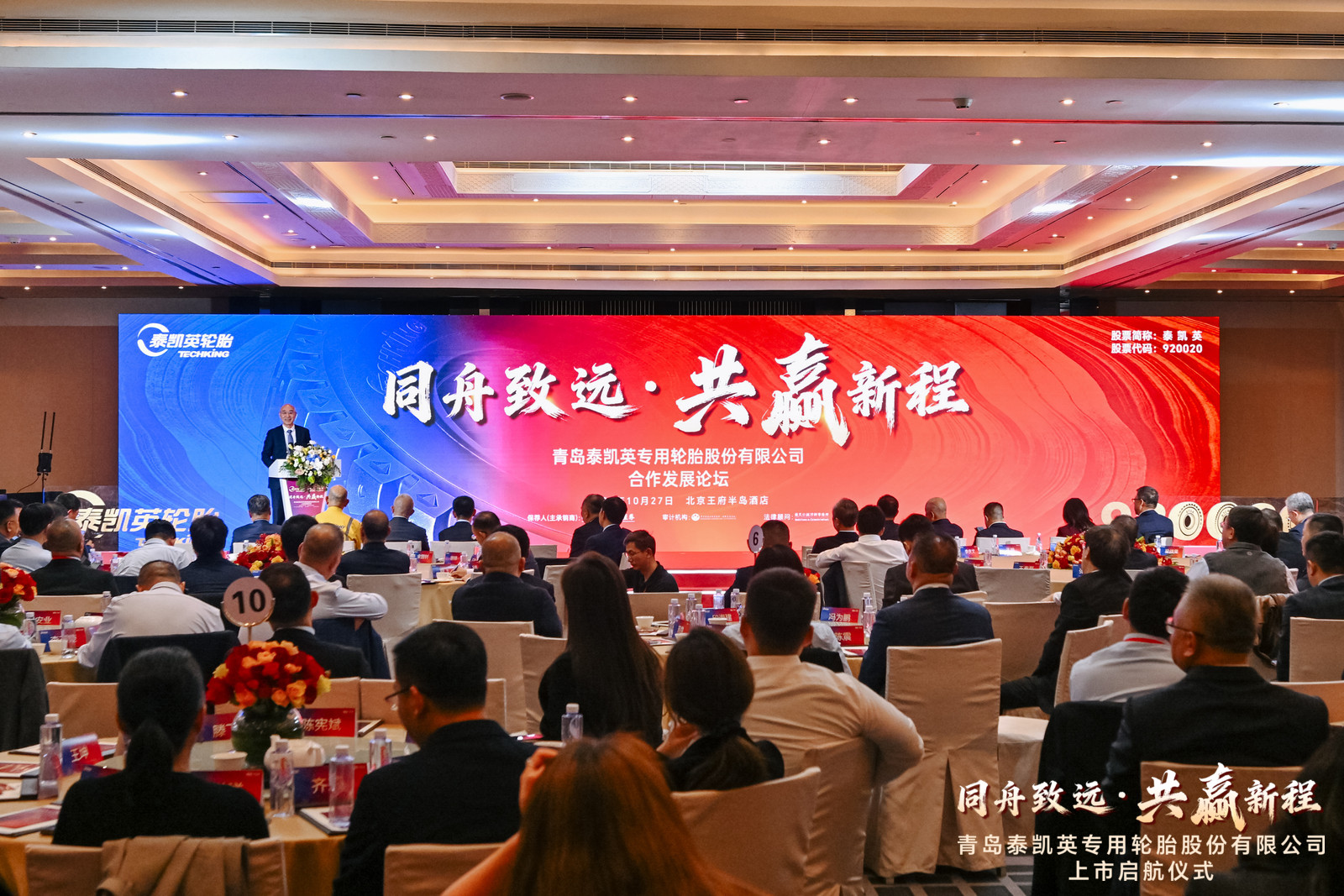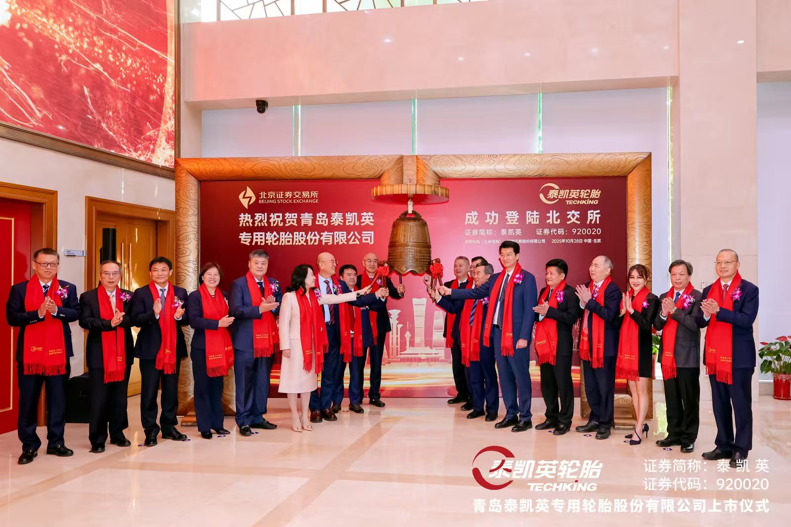 10月28日上午9时30分,青岛科技大学校友领办企业——青岛泰凯英专用轮胎股份有限公司(股票代码:920020)在北京证券交易所成功敲钟上市。校长陈克正应邀参加上市挂牌敲钟仪式,并出席泰凯英轮胎合作发展论坛。